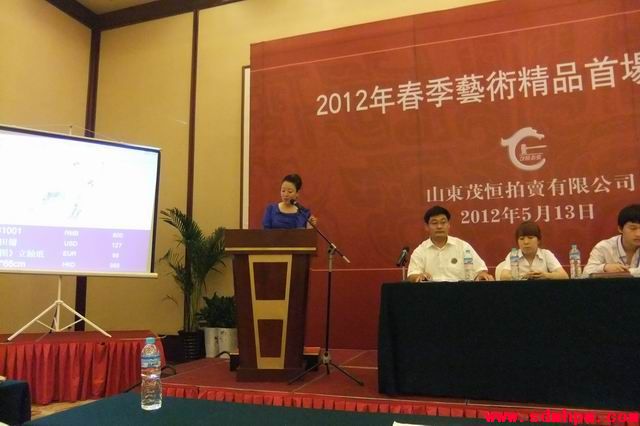2012年5月13日,在这草长莺飞的春天里,迎来了---山东茂恒2012年春季艺术精品首场拍卖会。总成交额3026.107万元,拍品成交率70.4%,圆满收槌。